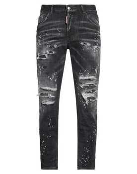 メンズブラックウォッシュペイントデニムジッパーフライストレートスリムフィットリッピング & リペアラインストーンパッチインナーサイドジーンズ